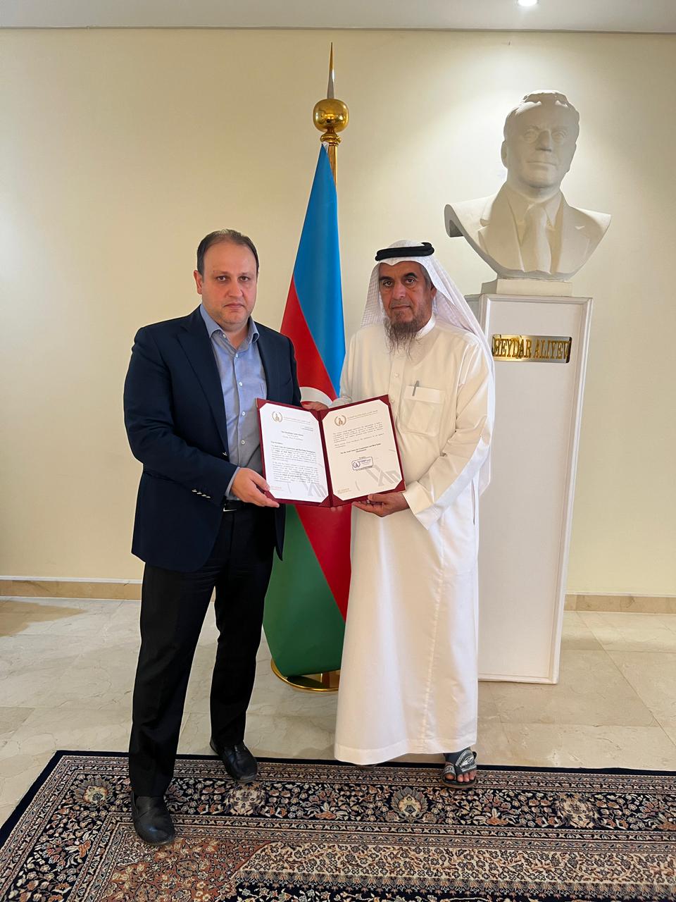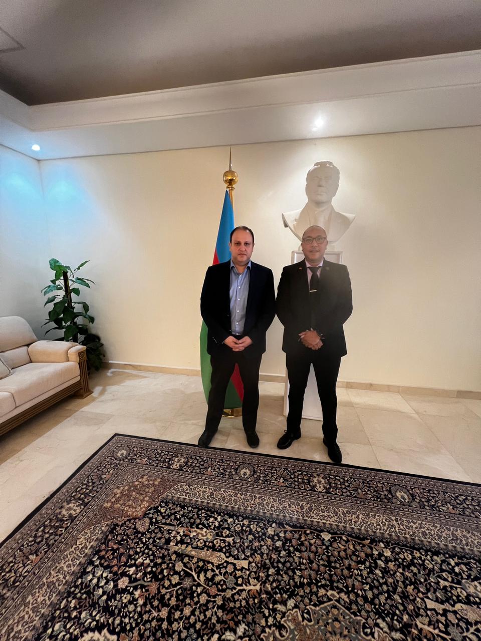 استقبل سعادة السفير متلم ميرزايف، سفير جمهورية أذربيجان لدى المملكة العربية السعودية، معالي رئيس الاتحاد العربي للبناء والتنمية العقارية الدكتور لاحق الغنام العتيبي، يرافقه سعادة الأمين العام للاتحاد الأستاذ صلاح الدين البدري، وذلك بمقر السفارة في الرياض.
